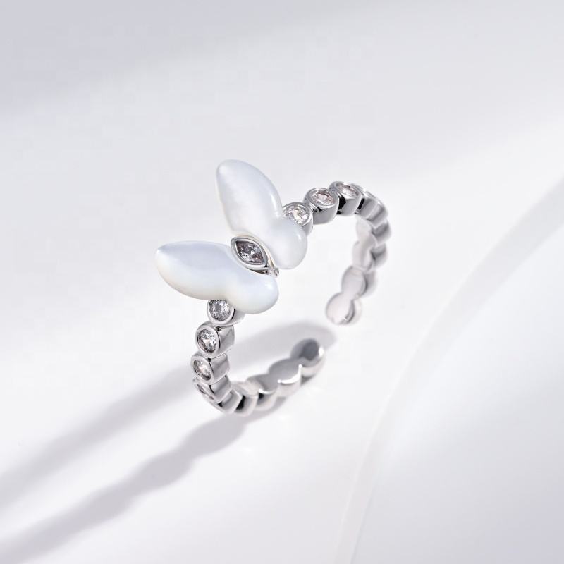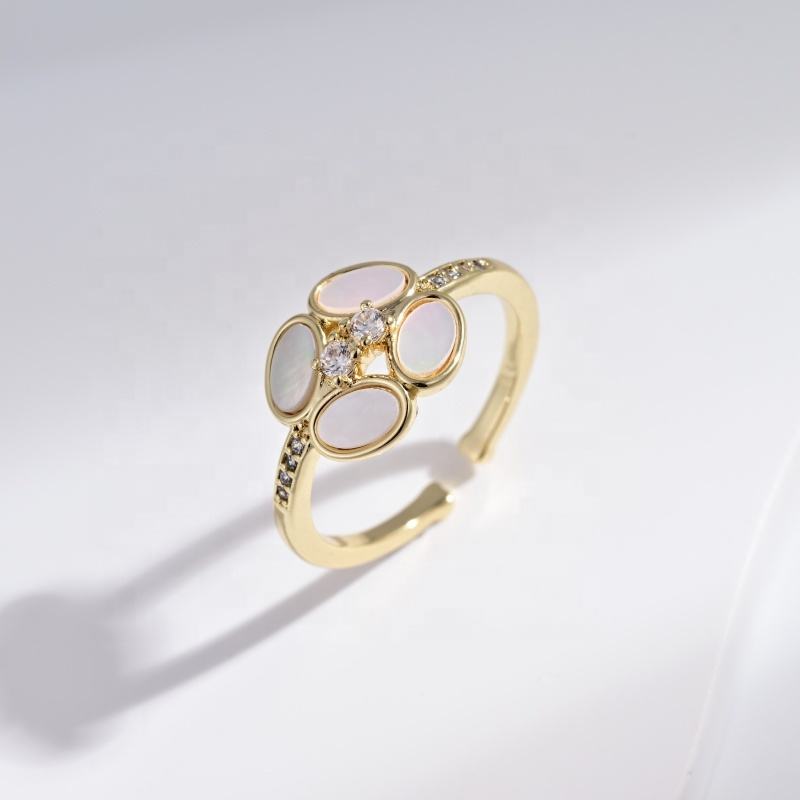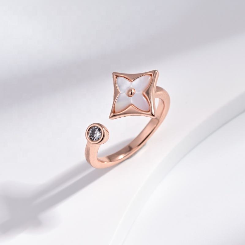 high quality plata 925 sterling silver clover dainty ring custom wedding women adjustable open gold plated resin gemstone rings