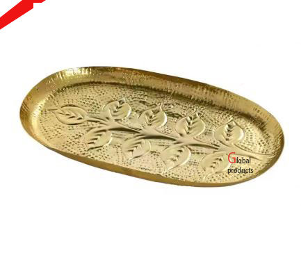 จานอลูมิเนียมสำเร็จรูปสีทองพร้อมลายนกและใบไม้สำหรับร้านอาหารโรงแรมและบาร์