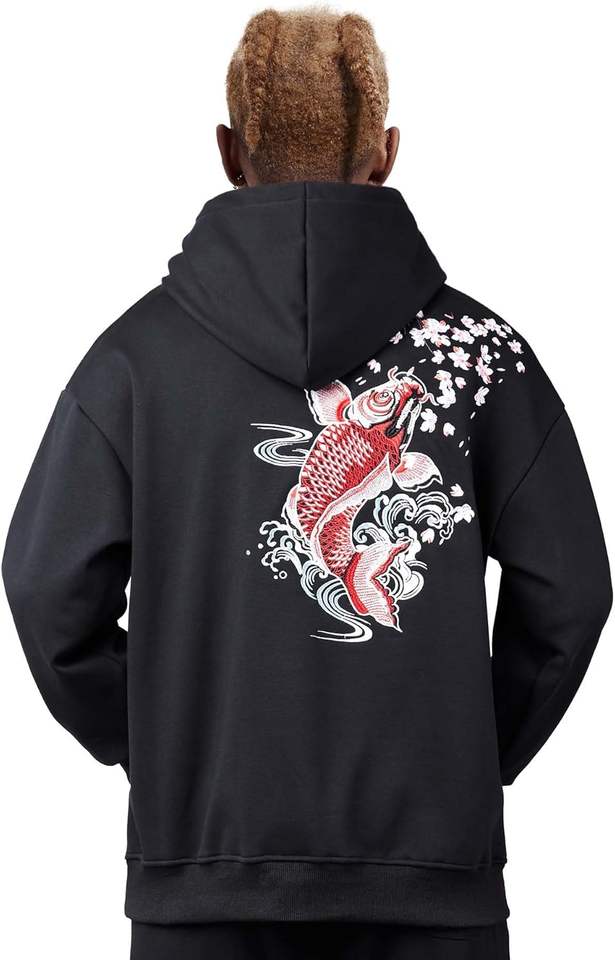เสื้อฮู้ดลายกราฟิกสำหรับผู้ชายผ้าฟลีซปักลายมังกรหนาทนทานต่อการใช้งาน