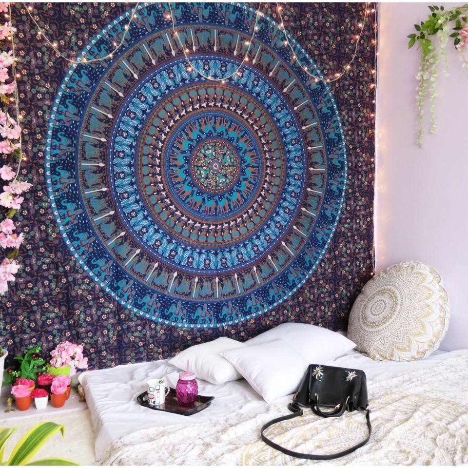 hms 92" X 84" Sky Blue And Purple Mandala Cotton Hanging Tapestry