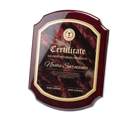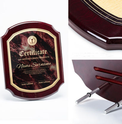 แผ่นไม้แกะสลักพร้อมกล่องไม้รูปทรงโล่โล่รางวัลฐานบ้าน