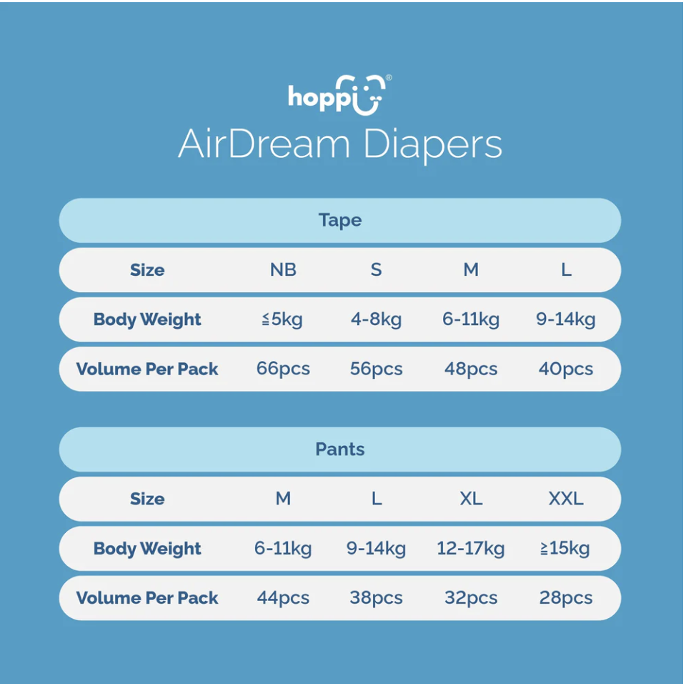 ผ้าอ้อมเด็กแบบเทป ฮอปปี้ แอร์ดรีม ไซส์ใหญ่ - 40 ชิ้น