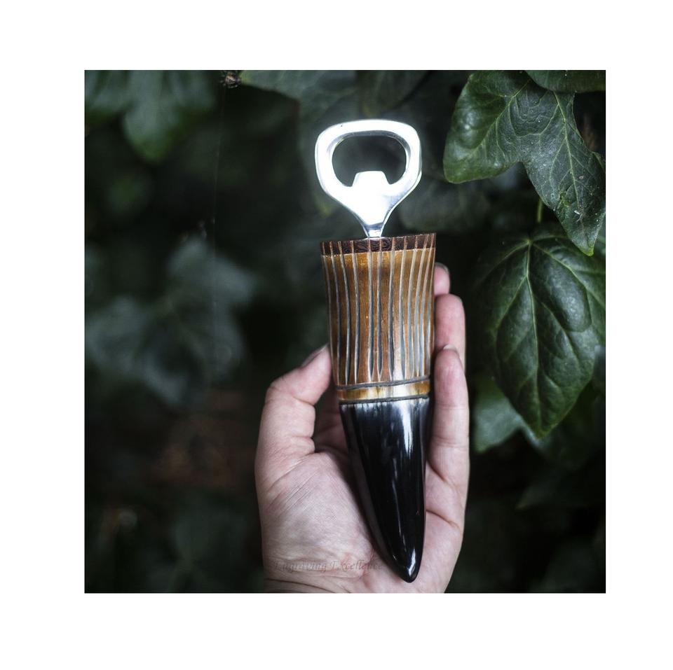 ที่เปิดขวดฮอร์นอุปกรณ์บาร์ออแกนิกแฮนด์เมดแนวชนบทช่างฝีมือขัดเงาธรรมชาติที่เปิดใช้งานได้ทนทานไม่เหมือนใคร