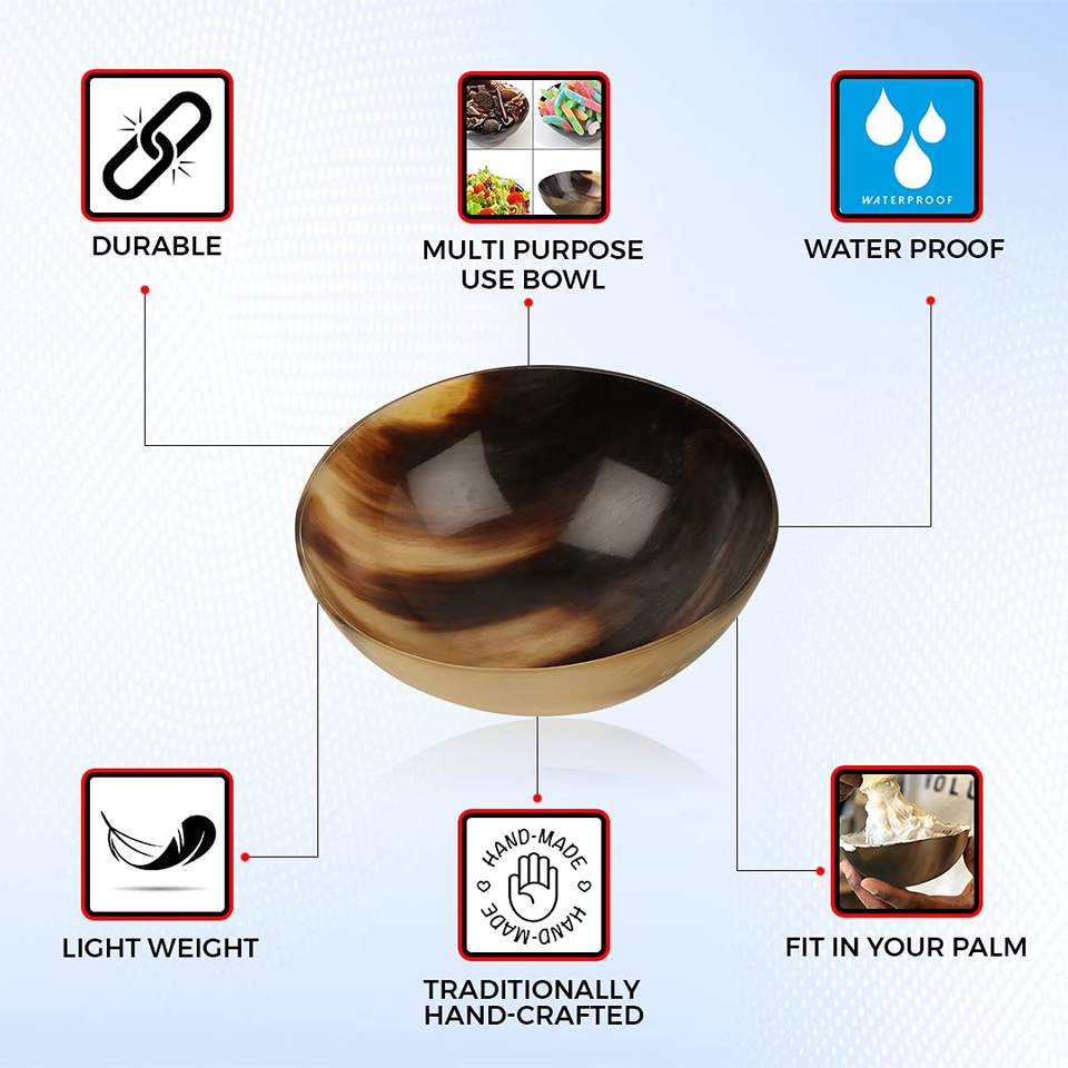 ชามเขาสัตว์สำหรับใส่ถั่วและผลไม้อบแห้ง ชามเขาสัตว์แท้สำหรับตกแต่งสไตล์วินเทจ ชุดชามเขาสัตว์ทำมือราคาถูก