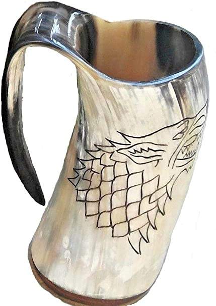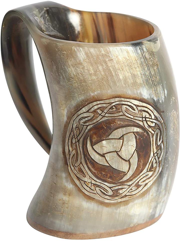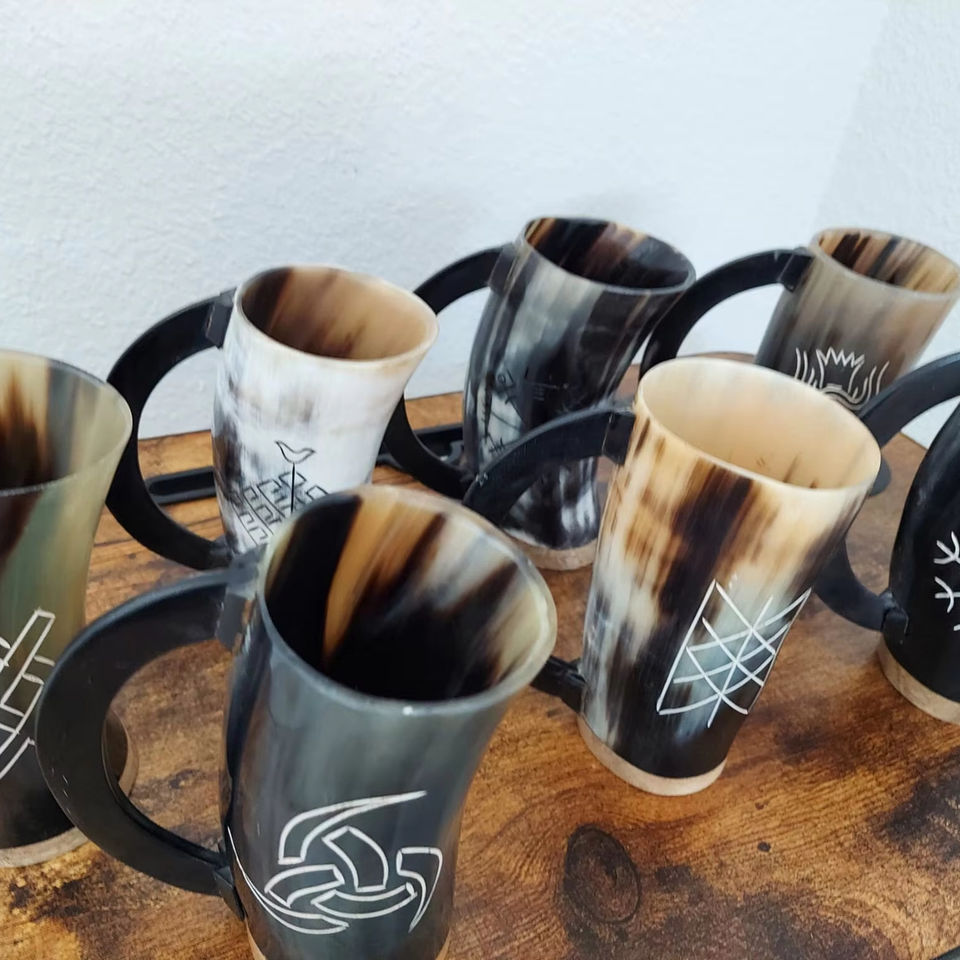 แก้วมักมีฮอร์นพร้อมขัดเงาภายนอกและภายในดูเป็นไวกิ้งฮอร์นแก้วมักดื่มแบบฮอร์นสำหรับดื่มแก้วยุคกลาง