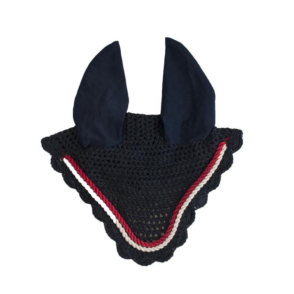 ม้าบินผ้าคลุมหน้า/หูหมวกถักคลาสสิกกับหูนุ่มและสายตกแต่งที่กำหนดเองกองทัพเรือ/สีแดง/สีขาวขี่ม้า