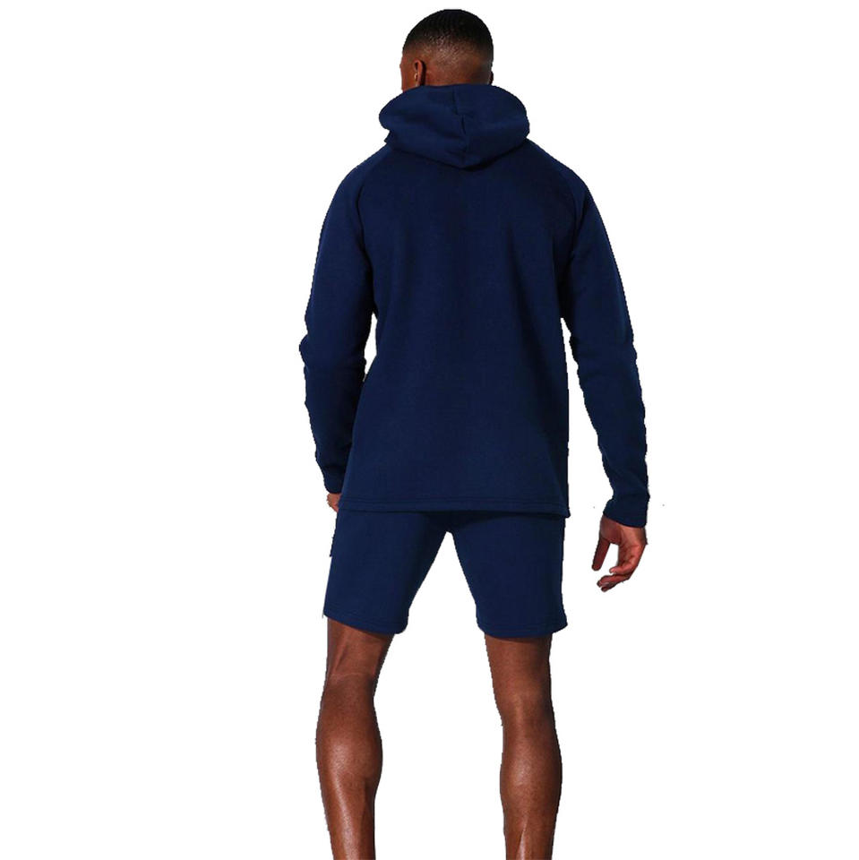 เสื้อฮู๊ดซิปคู่สำหรับผู้ชาย,พร้อมกางเกงวอร์มกางเกงขาสั้นสีน้ำเงินเข้มเสื้อผ้าลำลองสำหรับผู้ชาย