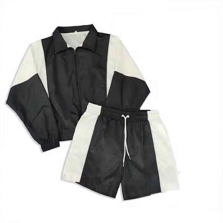 ชุดวอร์มกันลมแบบ unisex ขายดี พร้อมกางเกงขาสั้น เสื้อแจ็คเก็ตซิป และกางเกงจ็อกเกอร์เข้าชุด เหมาะสำหรับกีฬากลางแจ้งและสตรีทแวร์ MOQ ต่ำ