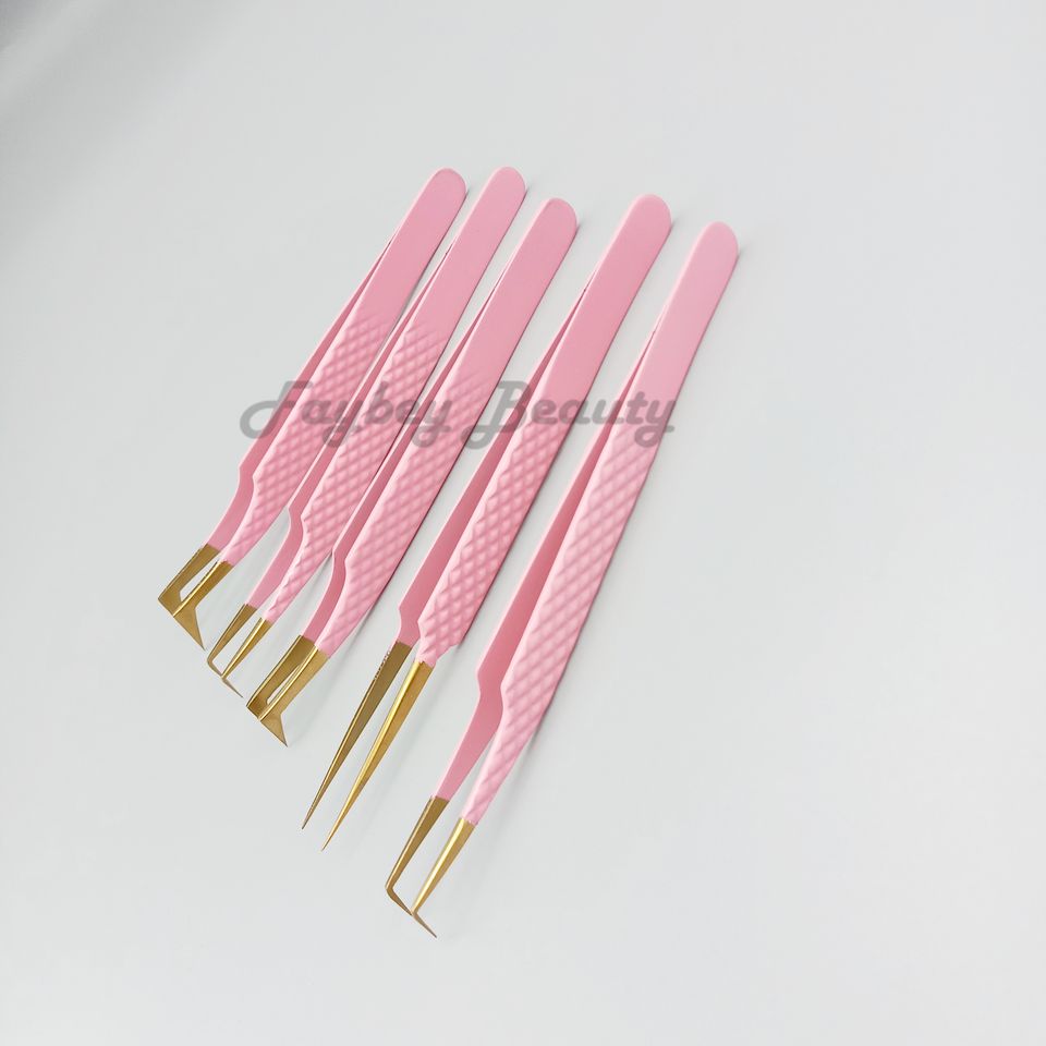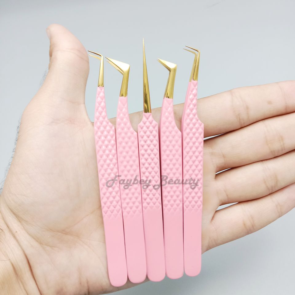 แหนบต่อขนตาปลอมสีชมพูแบบโค้งงอได้45องศา9มม. พร้อมเส้นใยออกแบบโลโก้ได้ตามต้องการ