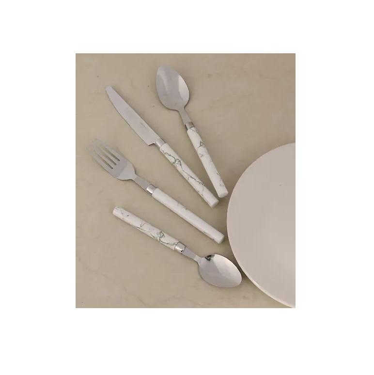 ชุดช้อนส้อมมีดสำหรับงานแต่งงาน,ชุดเครื่องใช้บนโต๊ะอาหารมือจับสีขาวใสชุดช้อนส้อมขัดกระจกสแตนเลส