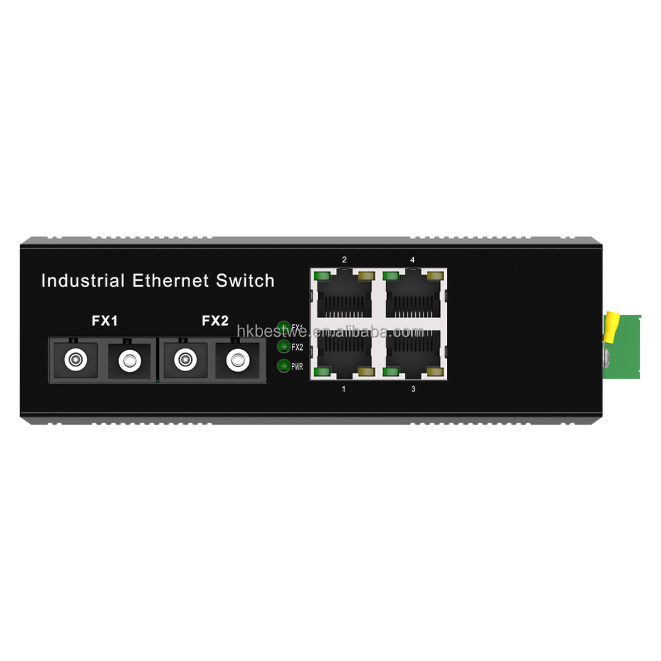สวิตช์อีเธอร์เน็ตอุตสาหกรรม100ม. สวิตช์2 SC โหมดเดี่ยวไฟเบอร์4พอร์ต RJ45อุณหภูมิกว้าง-40 ~ 75 °C