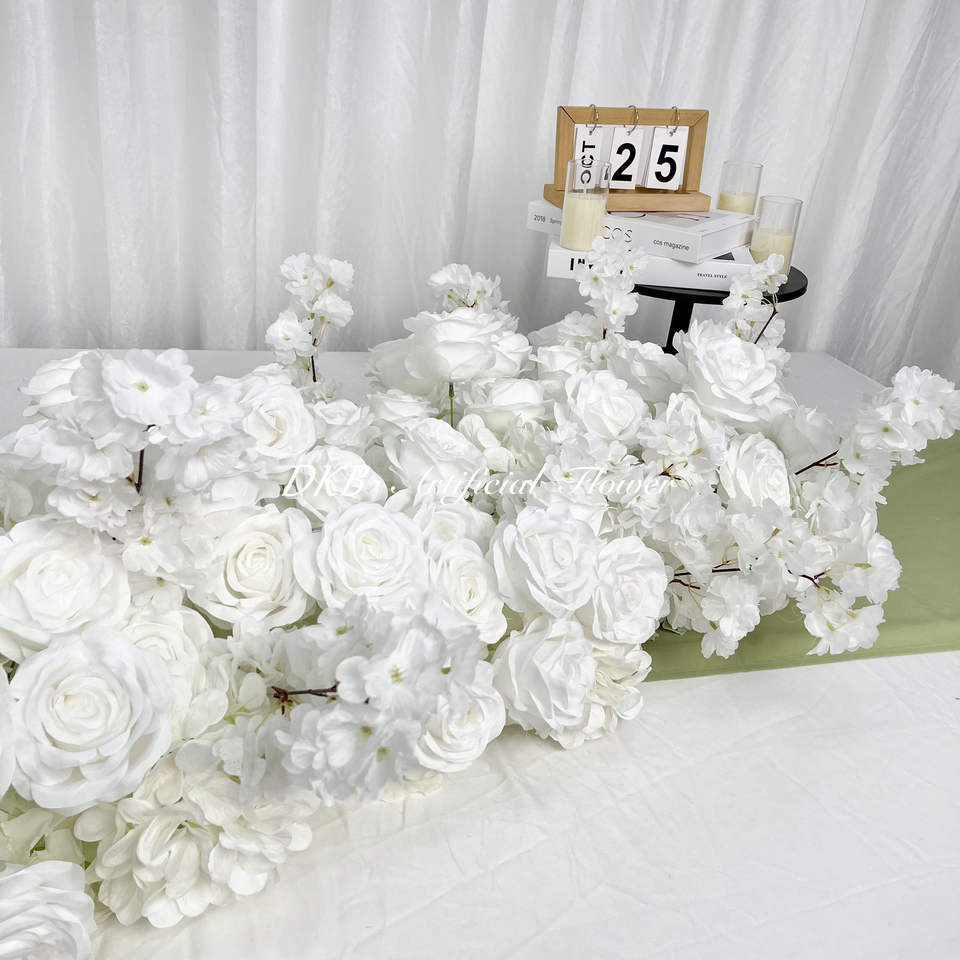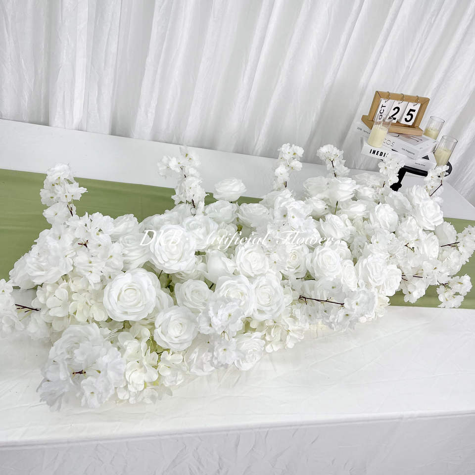 ผ้าปูโต๊ะลายดอกไม้ประดิษฐ์ดอกไม้ขายดีผ้าปูโต๊ะงานแต่งงานหรูหราดอกไม้สีเขียวสีเบจสีขาว