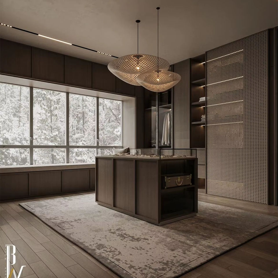 ระบบตู้เสื้อผ้าแบบวอล์กอินสุดหรูทันสมัยพร้อมประตูบานเลื่อน โครงสร้างไม้เนื้อแข็ง สำหรับใช้ในโรงแรม
