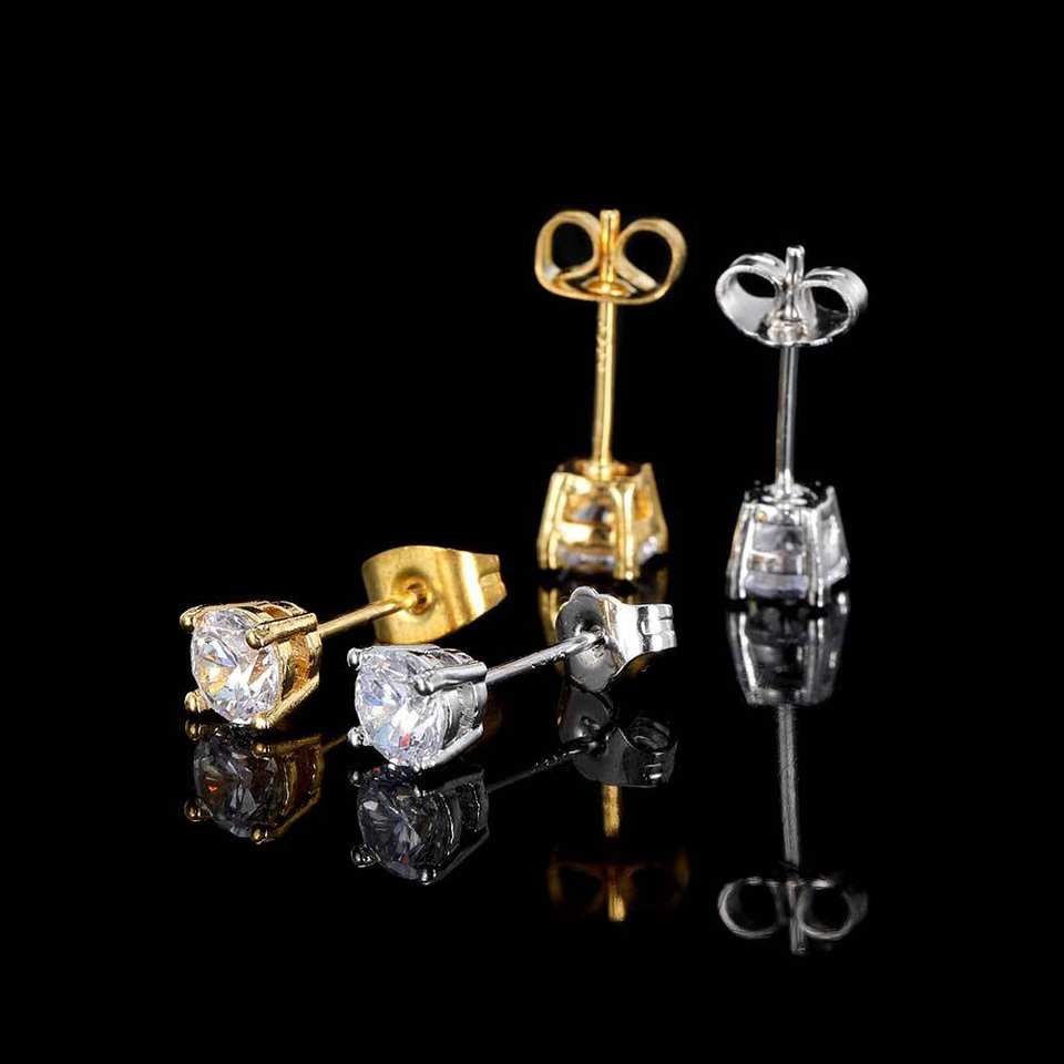 ต่างหูฮิปฮอปทรงกลมประดับเพชรซิร์คอนแบบสี่ก้าน ดีไซน์ทันสมัย ตัวเรือนเงินแท้ เหมาะสำหรับทั้งผู้ชายและผู้หญิง