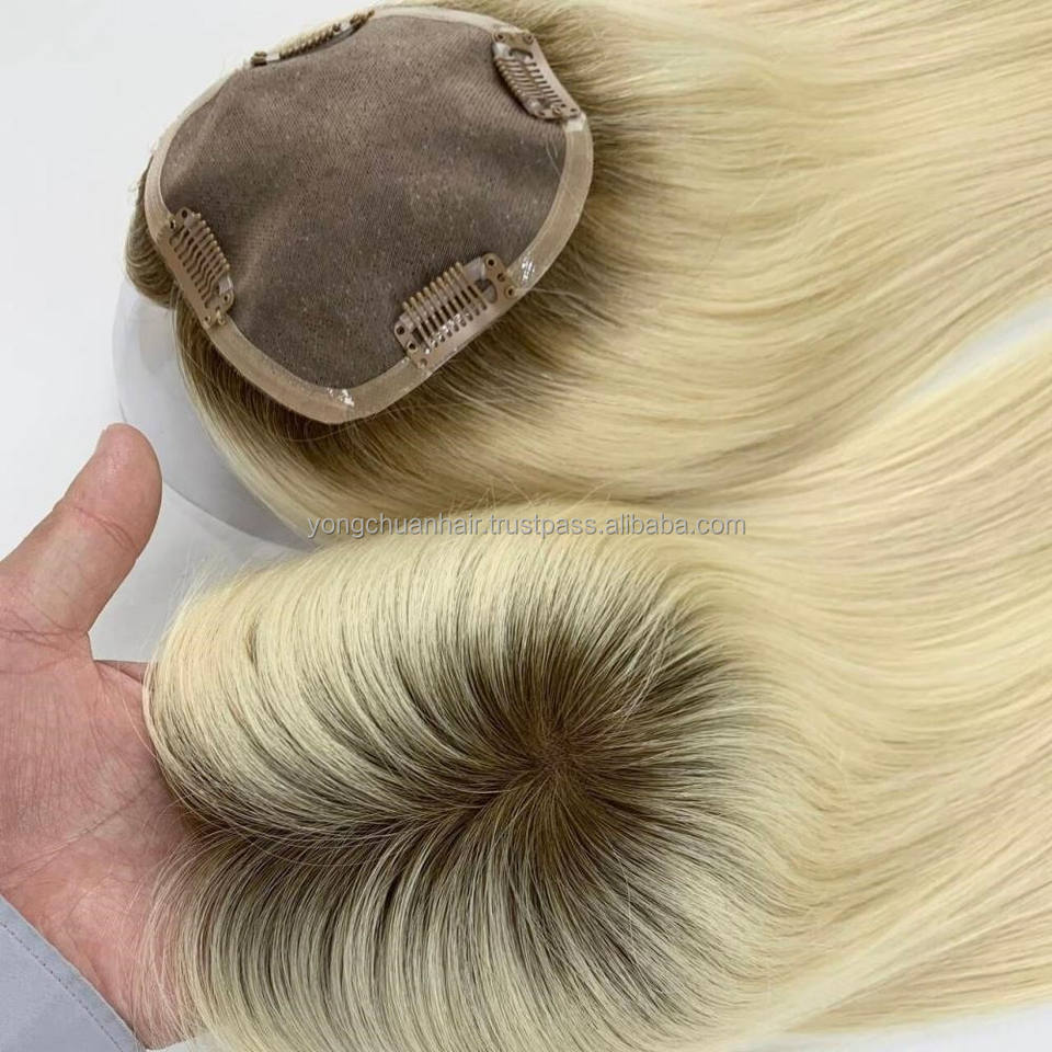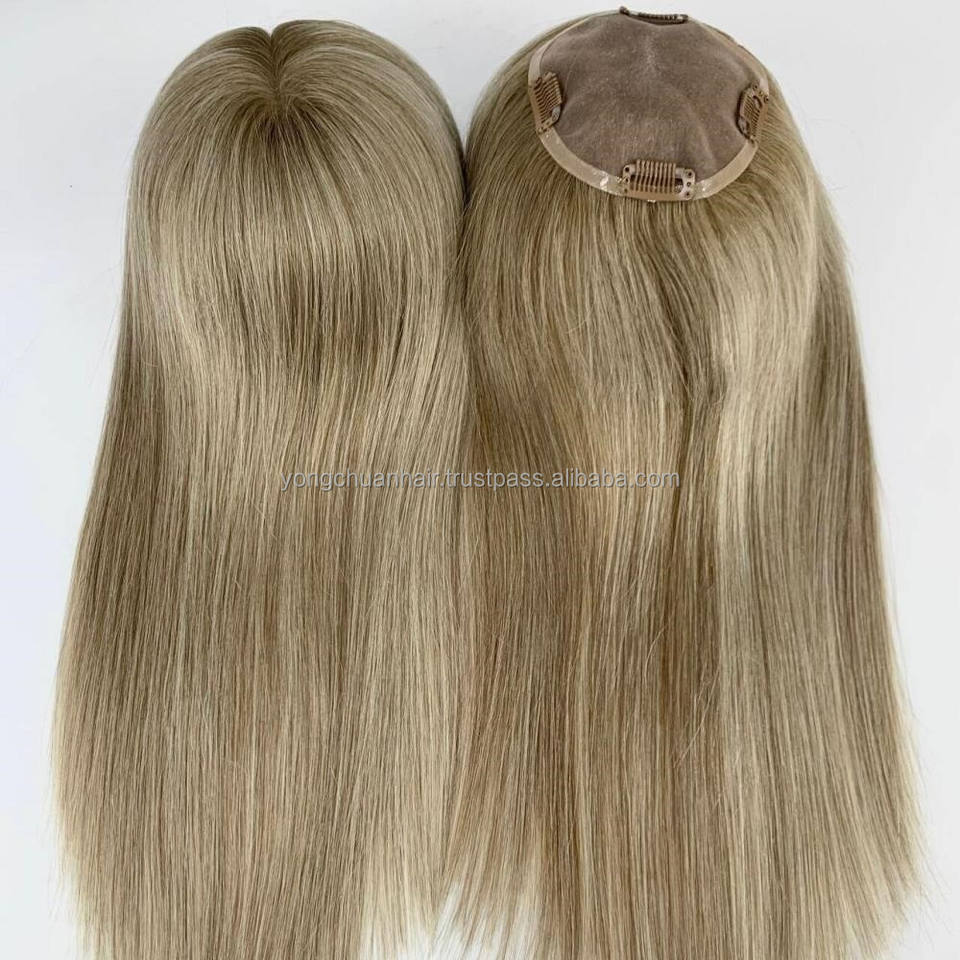 ฝาปิดตาข่าย PU แบบเต็มตัวสำหรับผู้หญิงผมบลอนด์ท็อปเปอร์ยุโรปทำวิกผมปลอมฐานซิลิโคนขนาด16นิ้ว