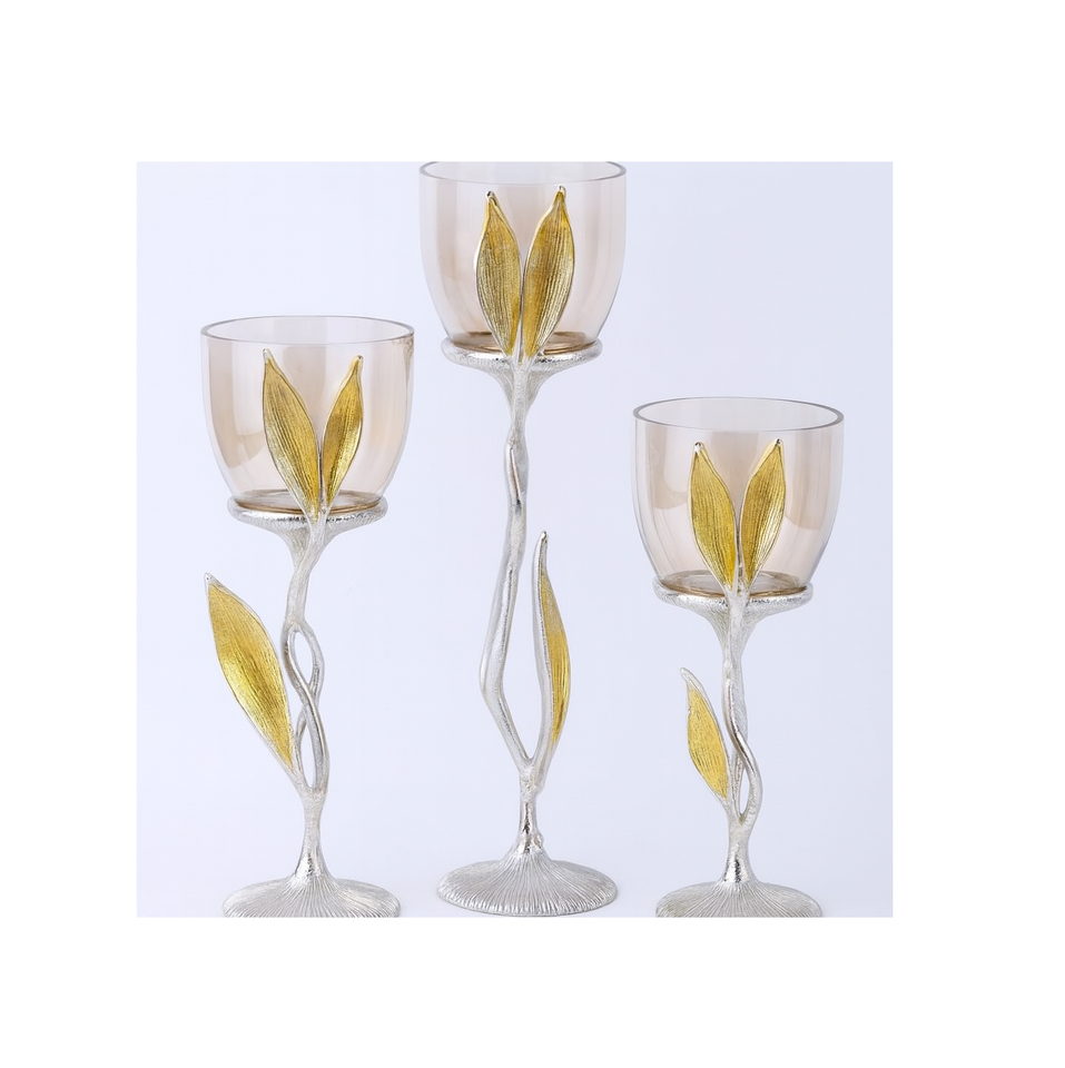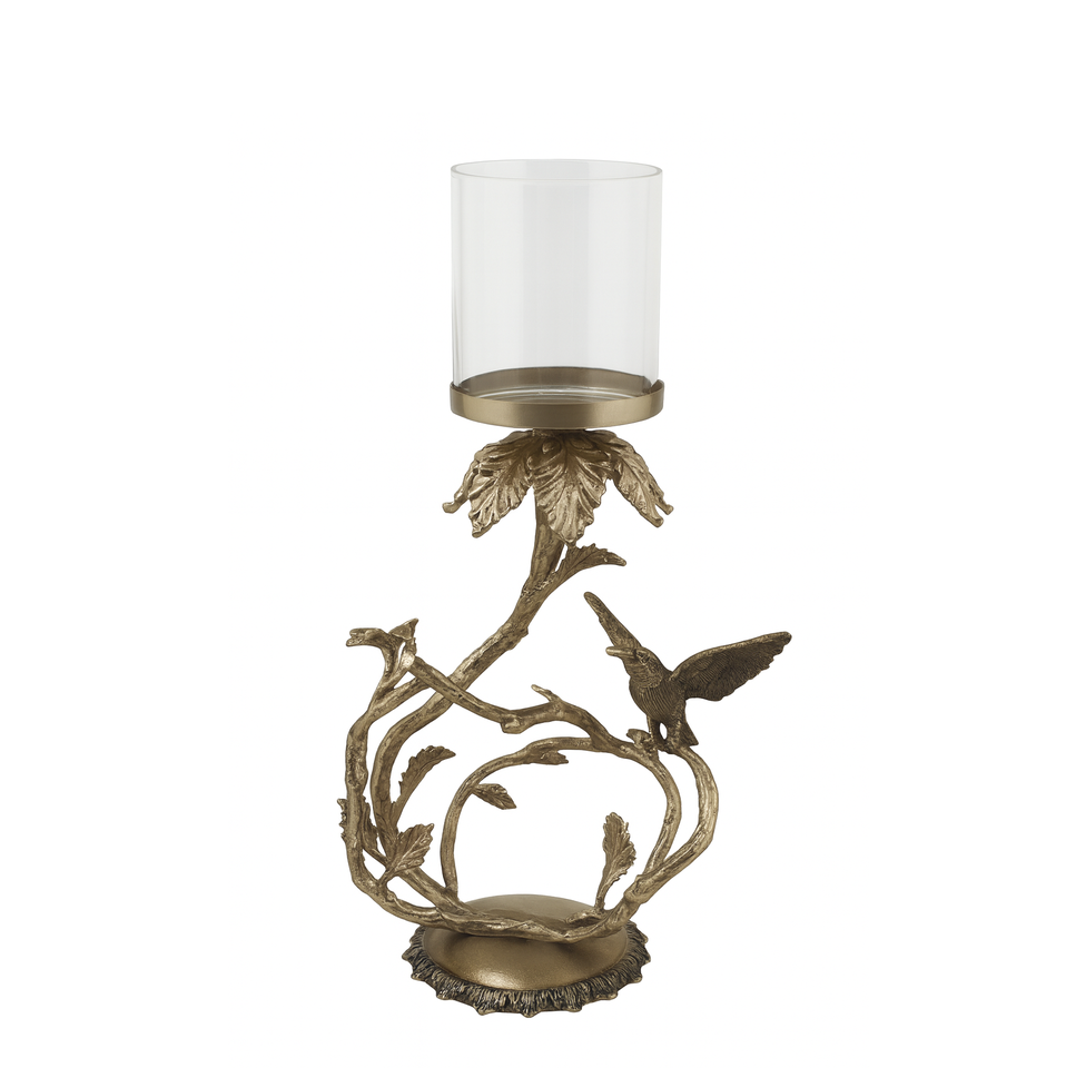 เชิงเทียนรูปนกฮัมมิงเบิร์ดสามชั้นลายดอกไม้ลวดลายดอกไม้ตกแต่งบ้านหรูหราตกแต่งบ้านด้วยแรงบันดาลใจจากธรรมชาติสีทอง
