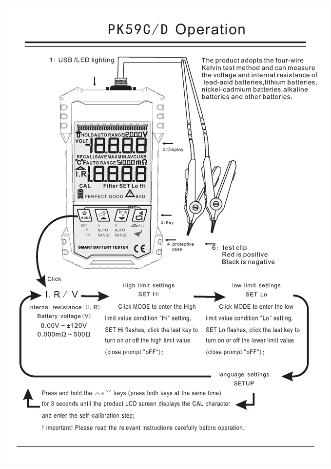เครื่องทดสอบแบตเตอรี่แบบพกพา i-POOK RTS 120V สำหรับทดสอบแรงดันไฟฟ้าและความต้านทานภายใน