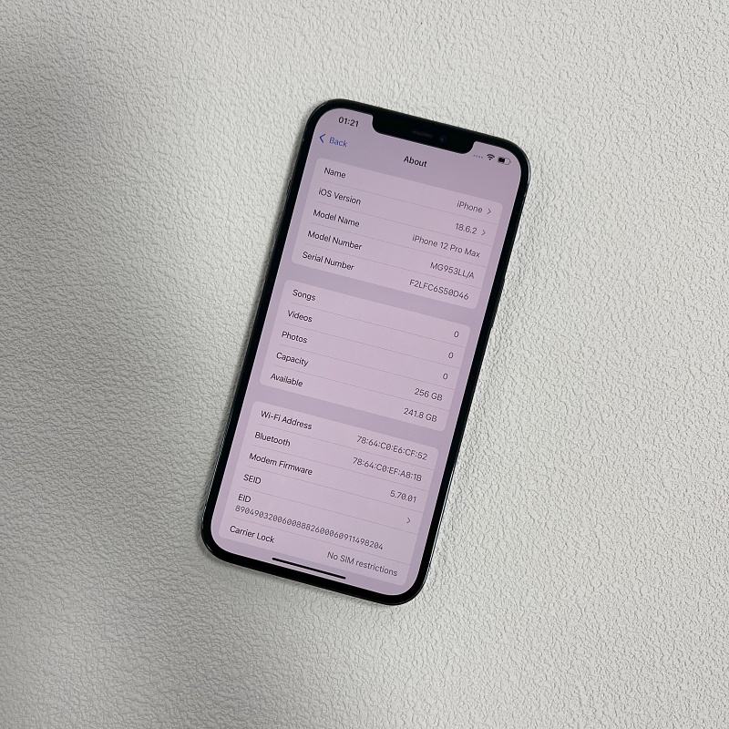 IPhone 12 PRO MAX ปลดล็อคเดิมรุ่นเรา l/a พร้อม100% แบตเตอรี่อุปกรณ์เสริม esim ในกล่องสีที่เข้ากันได้