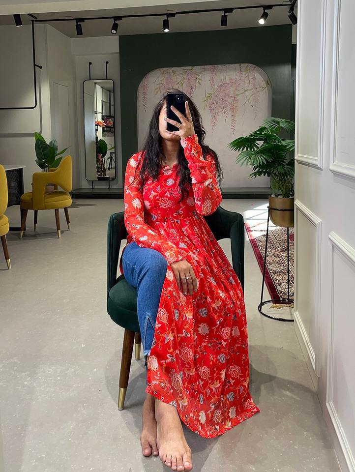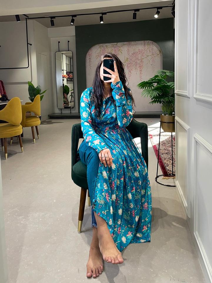 Product Name:Georgette Kurti With Floral Printed Work