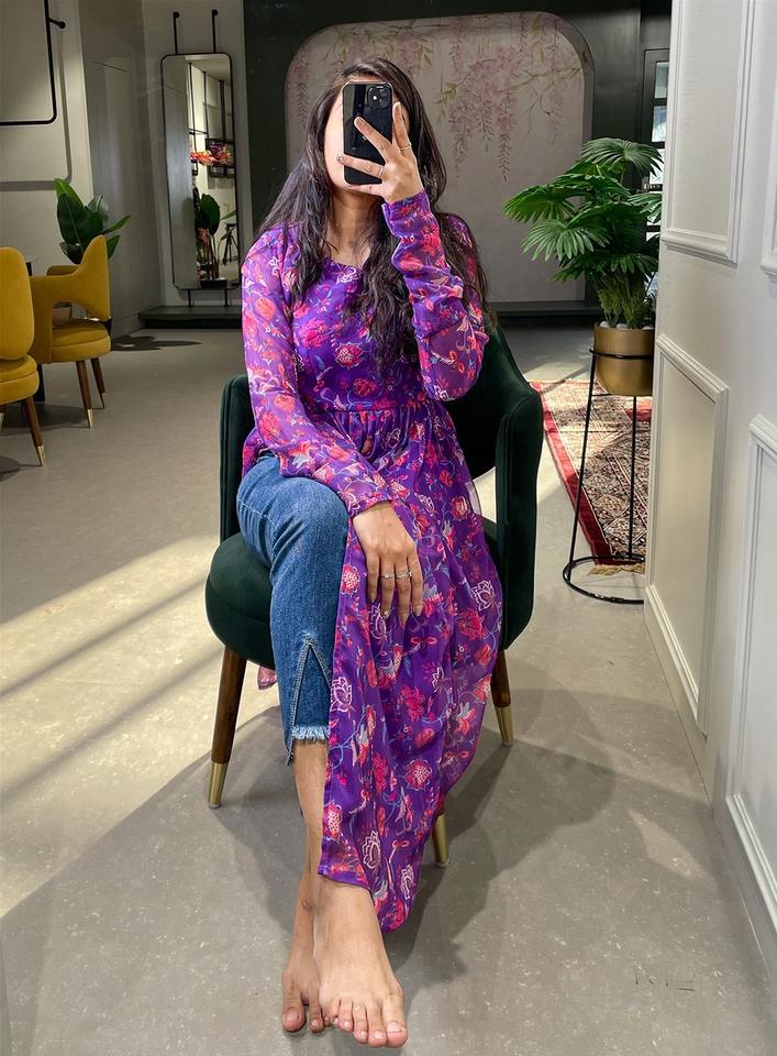 Georgette Kurti With Floral Printed Work