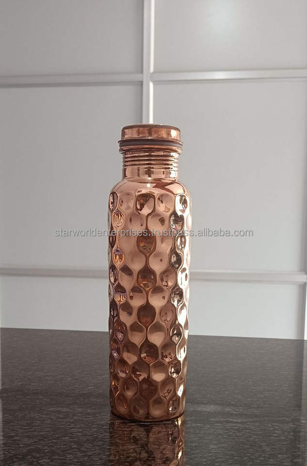 ขวดน้ำทองแดงพิมพ์ลาย100% ล้วนของอินเดียขวดน้ำทองแดงสำหรับยิมกีฬาและการเดินทางขวดน้ำผลิตในอินเดีย