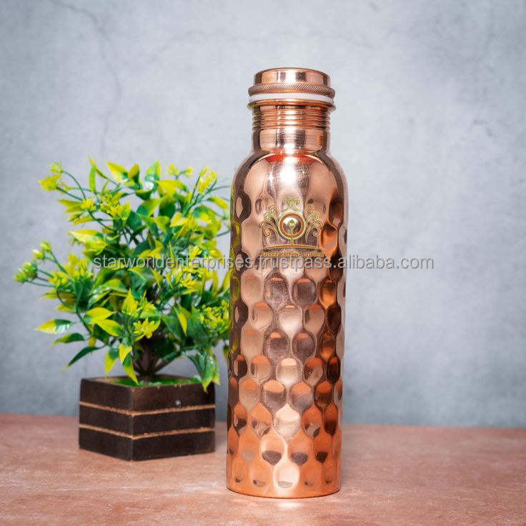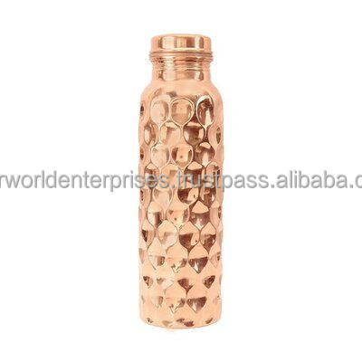 ขวดน้ำทองแดงพิมพ์ลาย100% ล้วนของอินเดียขวดน้ำทองแดงสำหรับยิมกีฬาและการเดินทางขวดน้ำผลิตในอินเดีย