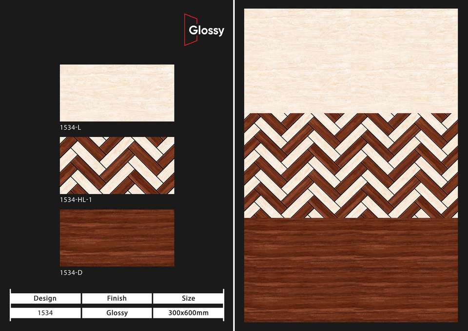 กระเบื้องบุผนังเซรามิกขนาด 300x600 มม. สำหรับห้องน้ำ ห้องครัว ผิวมันเงา/ด้าน ลายแกะสลักน้ำตาล ดีไซน์ตกแต่งผนังภายในสุดหรู