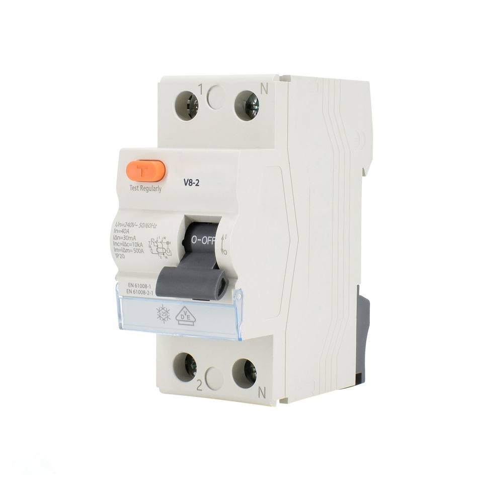 interruptor diferencial 2 polos 25a 30ma 10ka, cumple con vde, para proteccin contra sobrecargas y fugas de corriente.