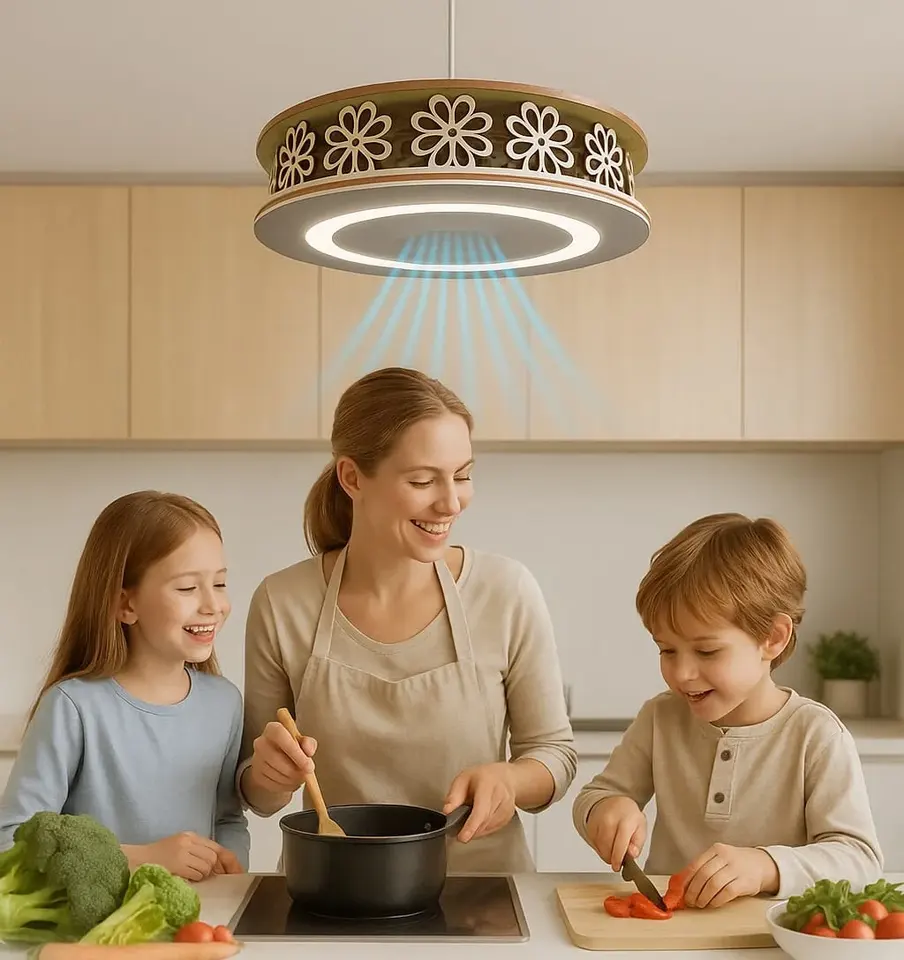 พัดลมเพดานแบบซ่อน พัดลมไร้ใบพัดพร้อมไฟ LED พัดลมดีไซน์เนอร์ พัดลมเงียบสำหรับห้องครัว พัดลมเพดานแบบไม้