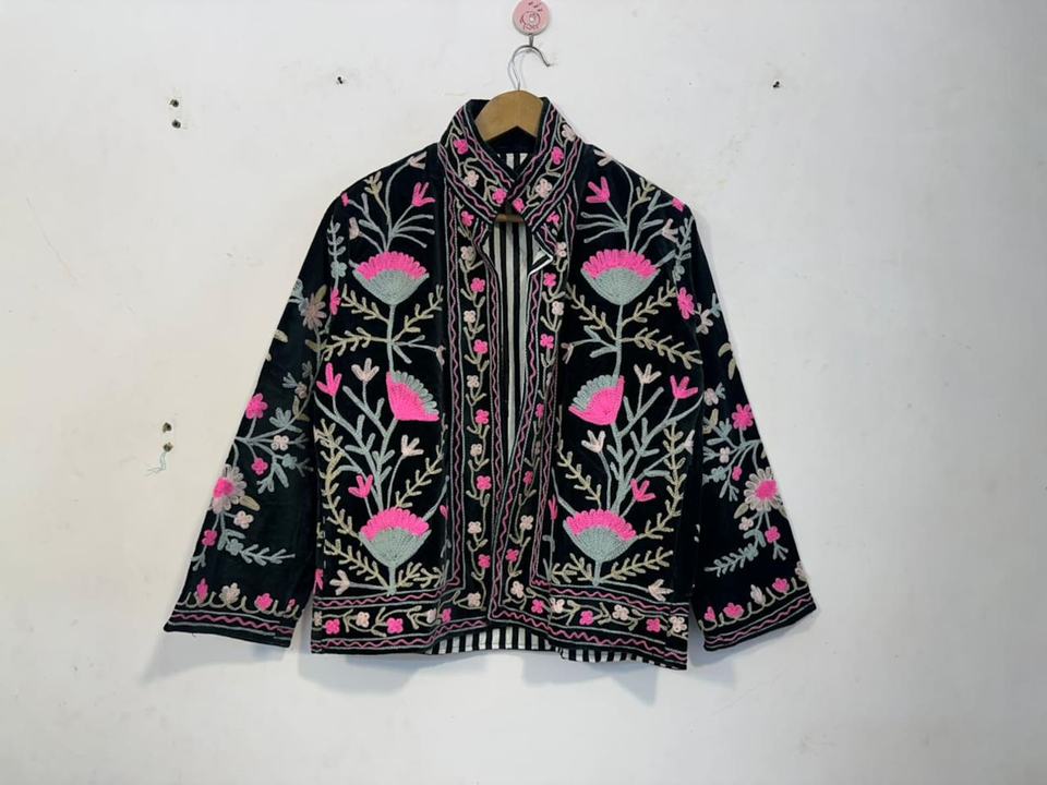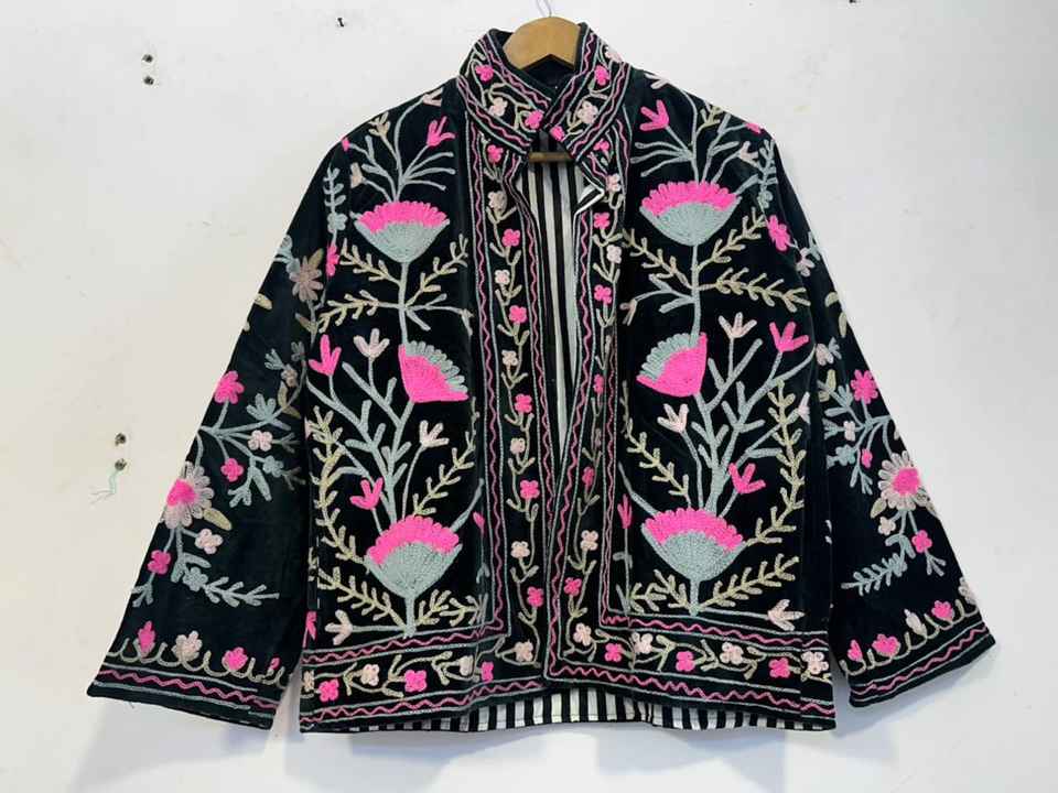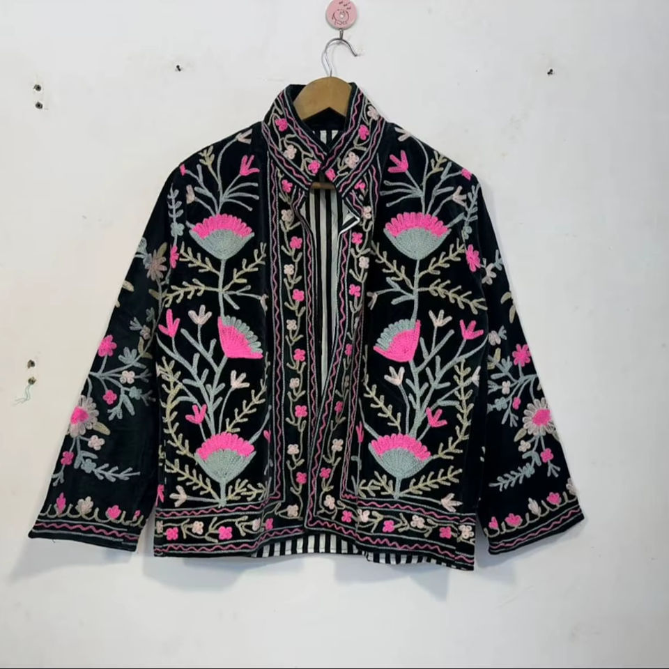 เสื้อแจ็คเก็ตบอมเบอร์กำมะหยี่ปักลายซูซานี ผ้าถักนิตติ้ง แต่งลายปักแบบโบโฮ เหมาะสำหรับเทศกาลฤดูหนาว เสื้อคลุมกิโมโนสไตล์ชาติพันธุ์ ผ้าไนลอนระบายอากาศได้ดี
