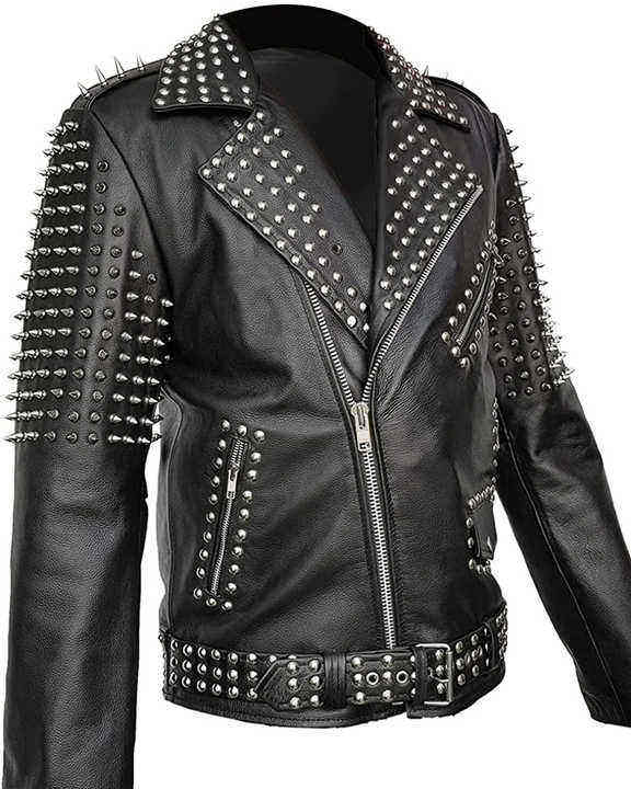 แจ็คเก็ตผู้ชาย ทำมือ สไตล์พังก์ร็อก ผ้าแคนวาส หนัง แจ็คเก็ตมอเตอร์ไซค์สำหรับผู้ชาย โลโก้ด้านหน้า ดีไซน์ระบายอากาศ แจ็คเก็ตสำหรับฤดูหนาว