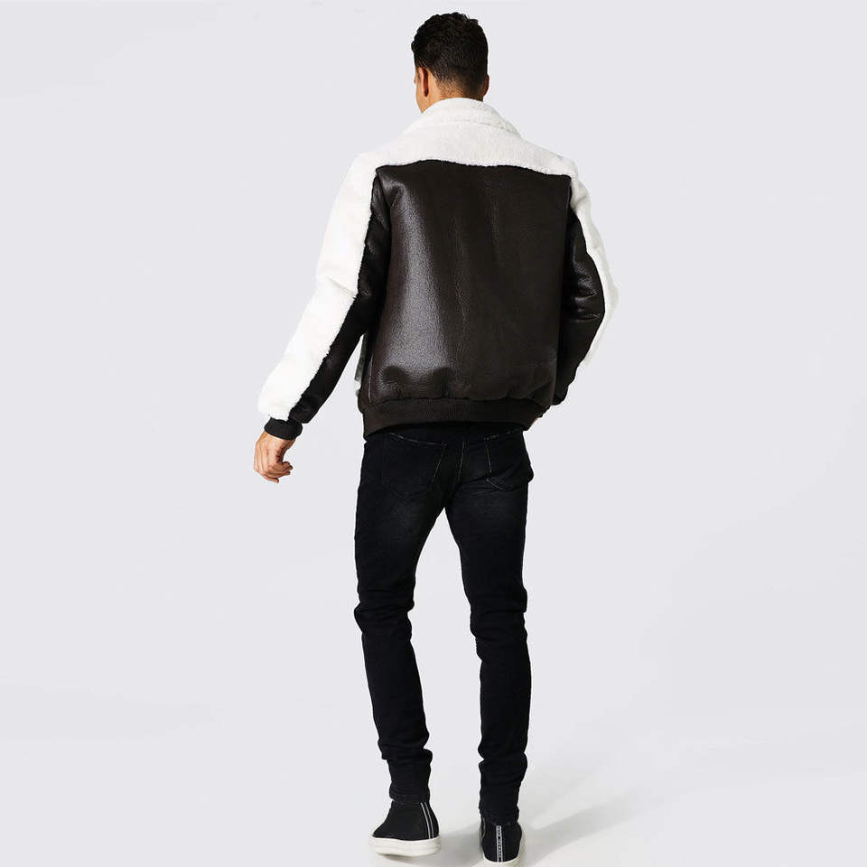 เสื้อแจ็กเก็ตหนังนิ่มบุขนแกะสไตล์นักบิน