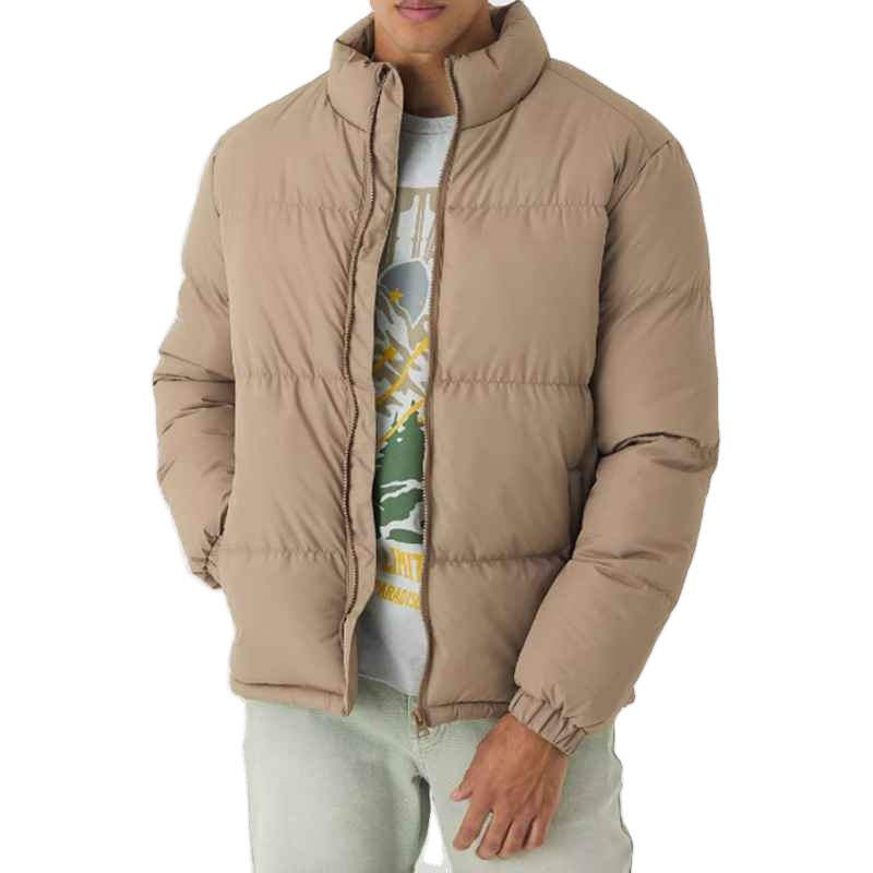 เสื้อแจ็คเก็ตผู้ชายขายส่ง เสื้อโค้ทบับเบิ้ลลำลอง เสื้อแจ็คเก็ตบุหนา แขนยาว มีซิปและกระเป๋า เสื้อกันหนาวคออุ่น บริการ OEM