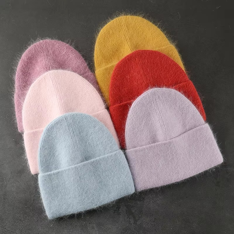 หมวกถักแจ็คการ์ดขนกระต่ายสำหรับผู้หญิงหมวกบีนนี่ขนกระต่ายนุ่มอุ่นสำหรับผู้หญิง