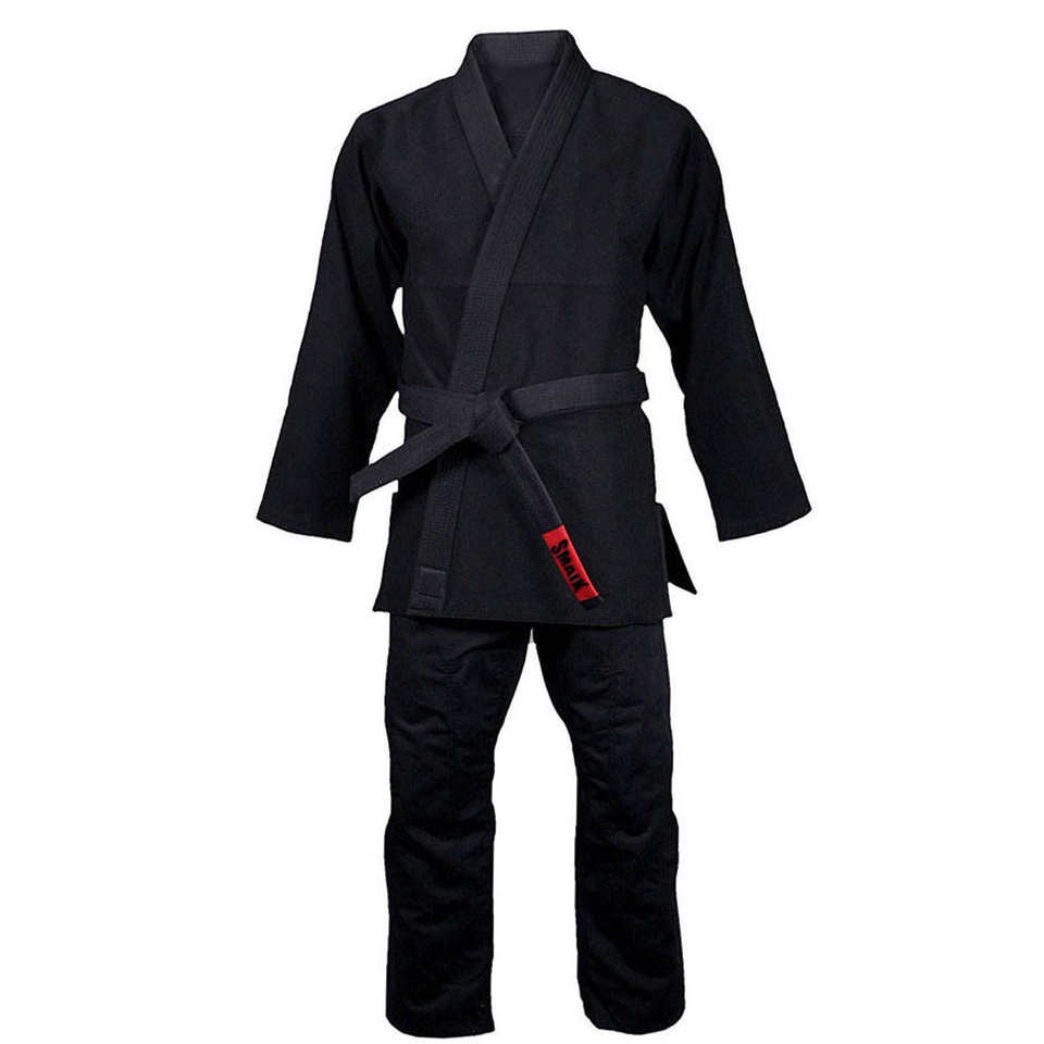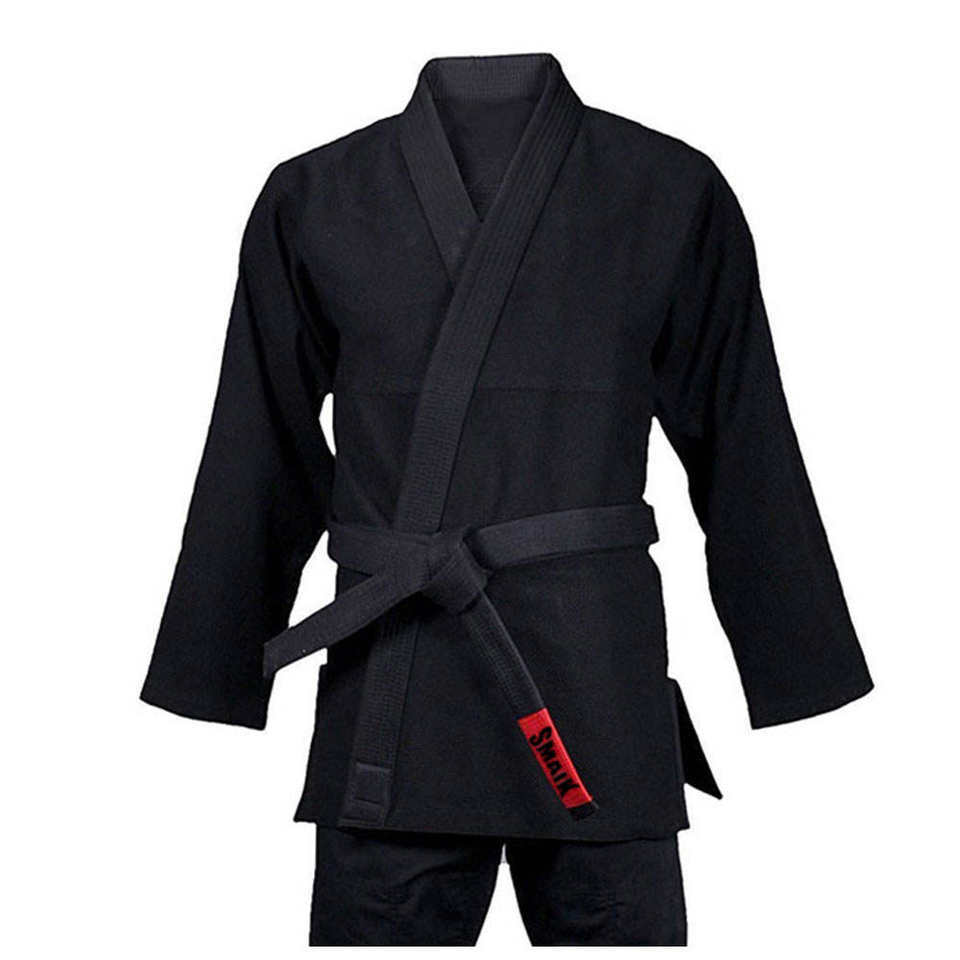 ชุดคาราเต้สีดำคุณภาพสูง ผ้าฝ้าย 100% ระบายอากาศได้ดี ปักโลโก้ด้านหน้าได้ตามต้องการ ขายส่งชุดศิลปะการต่อสู้