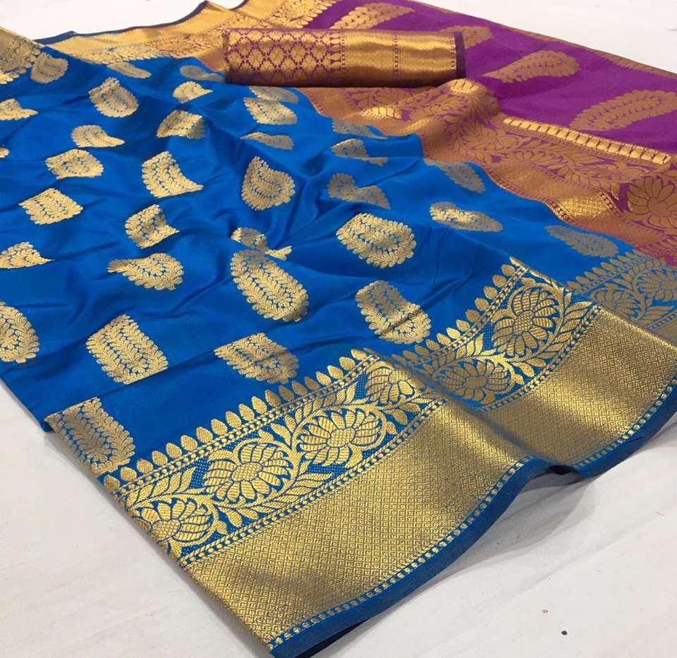 ผ้าไหมคันชิปุราม ผ้าไหมบานาราซี ผ้าไหมคอตตอน ชุดส่าหรีสำหรับงานปาร์ตี้ งานแต่งงานแบบอินเดีย ดีไซน์ล่าสุด ผ้าทอหลากสี เสื้อผู้หญิง