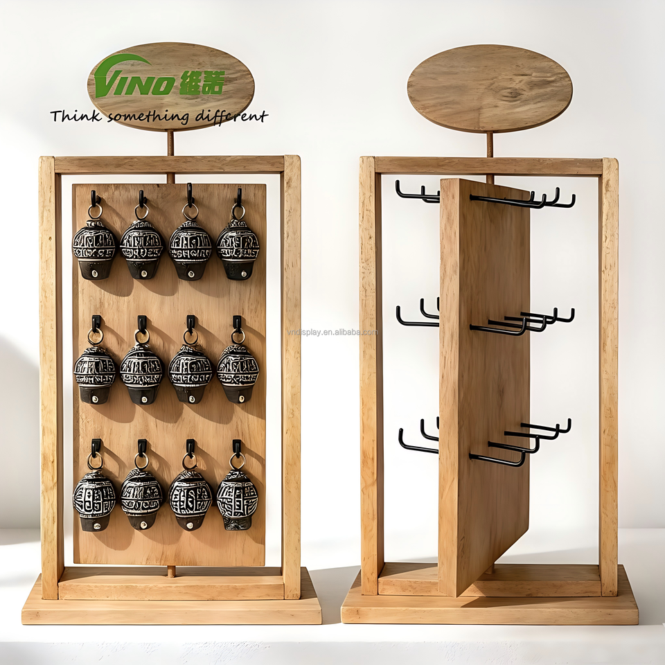 แท่นโชว์พวงกุญแจ แท่นโชว์เครื่องประดับไม้พร้อมตะขอหลายตัว - เหมาะสำหรับร้านค้าปลีกและการจัดแสดง