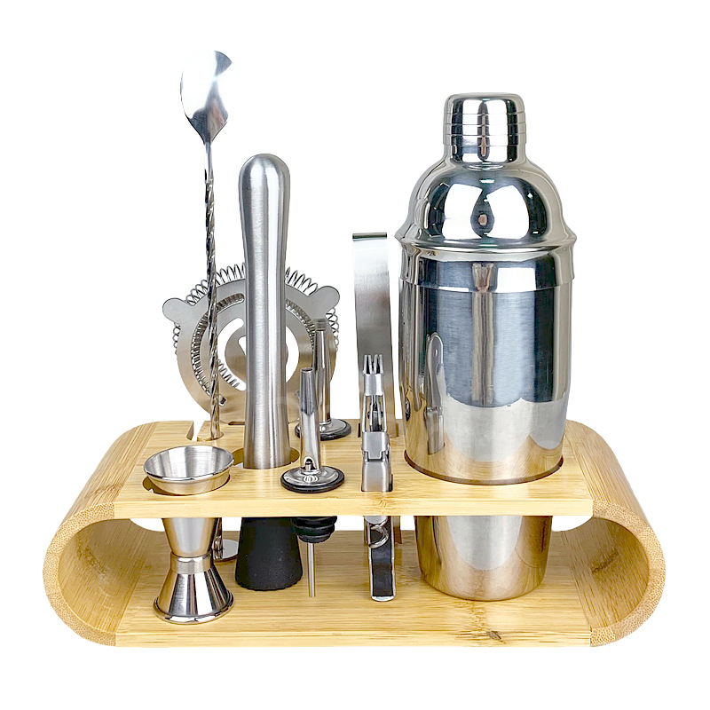 King International ชุดอุปกรณ์บาร์สเตนเลสสตีล,ชุดเชกเกอร์ขนาด750มล. ทำจากไม้ไผ่
