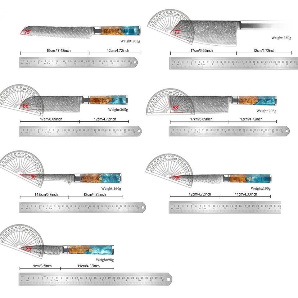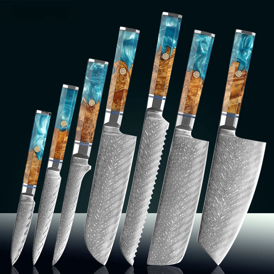 ชุดอุปกรณ์มีดทำครัวเหล็กดามัสกัสคมกริบ มีดหั่นสับสแตนเลสสำหรับใช้ในครัวเรือน ชุดมีดเชฟ
