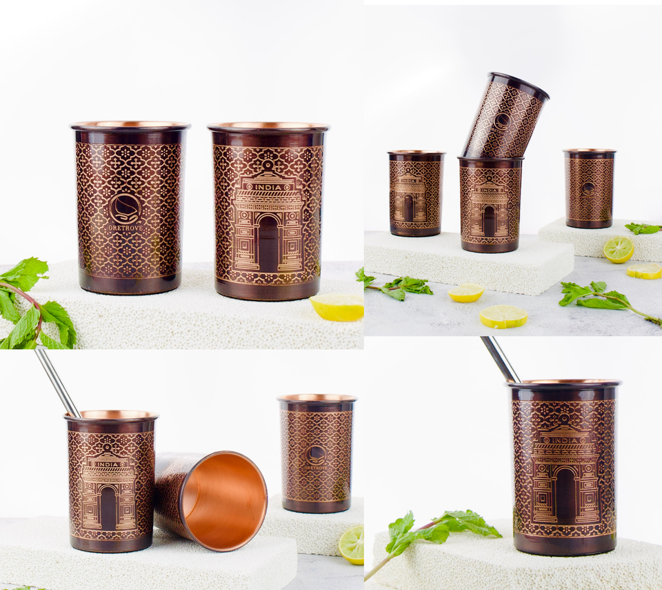 KOI แก้วน้ำทองแดงบริสุทธิ์สำหรับนักเดินทางถ้วยทองแดงสำหรับอายุรเวทประโยชน์ต่อสุขภาพแก้วน้ำค้อนทองแดง