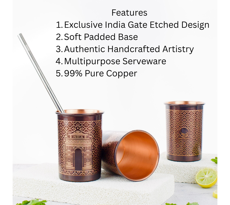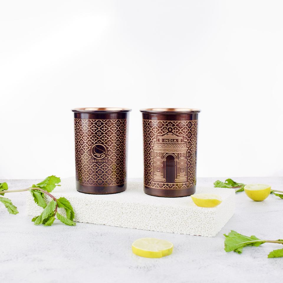 KOI แก้วทองแดงสำหรับนักเดินทางสำหรับ ayurveda แก้วน้ำทองแดงบริสุทธิ์แก้วน้ำแบบฆ้อน