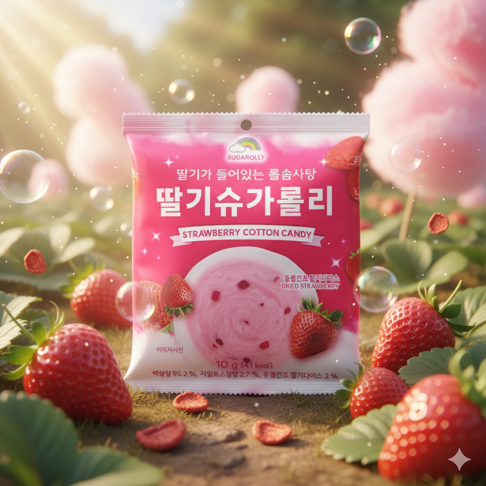ขนมเกาหลีขายส่งแบบ OEM/ODM ลูกอมฝ้ายรูปทรงตามสั่ง รสผลไม้สตรอว์เบอร์รี บรรจุภัณฑ์ฉลากส่วนตัว หลายสี รสหวาน