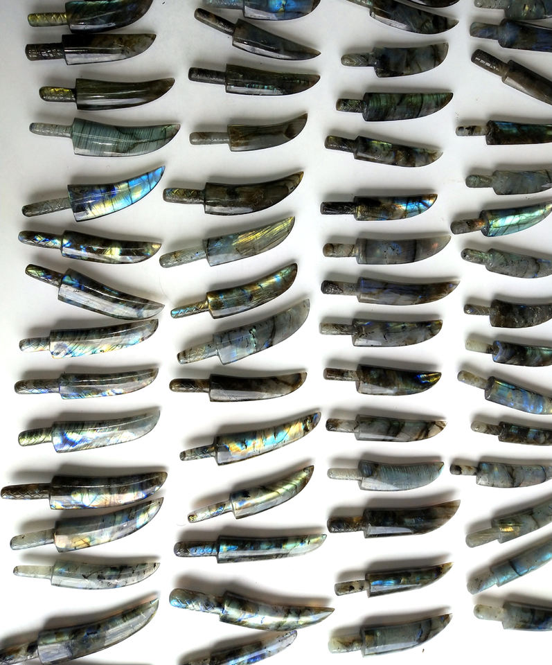 งานแกะสลักมีดจากลาบราโดไรต์ธรรมชาติ