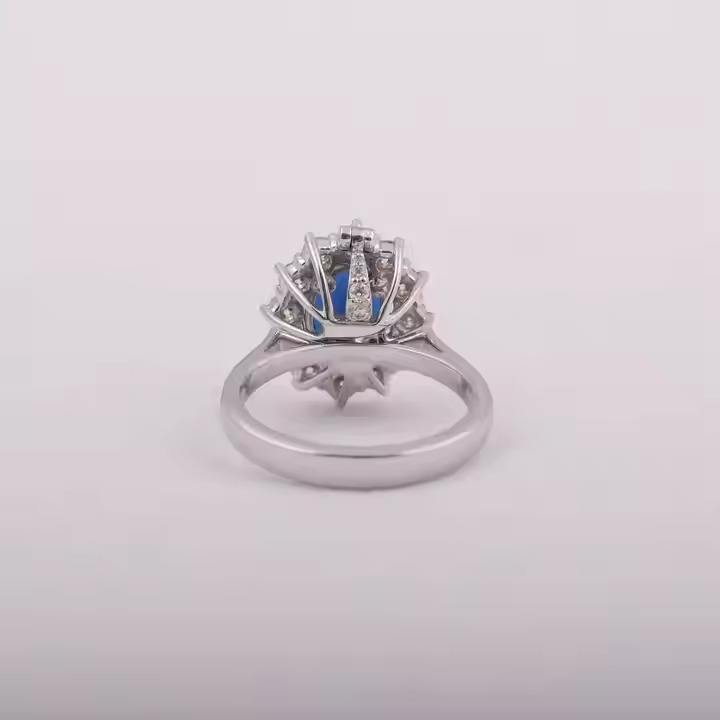 แหวนหมั้นเพชรธรรมชาติรูปวงรีสุดหรูแฟชั่นเครื่องประดับเพชรในห้องปฏิบัติการพร้อมแหวนหินสีน้ำเงินเข้ม