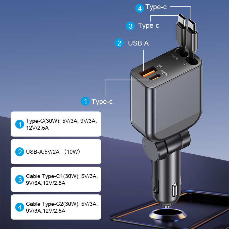 ชื่อสินค้า:ที่ชาร์จในรถแบบพับเก็บได้คู่