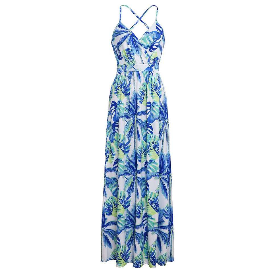 เดรสลายต้นมะพร้าวสุดชิค แขนกุด ทรงแม็กซี่ สไตล์ลำลองสำหรับผู้หญิง
