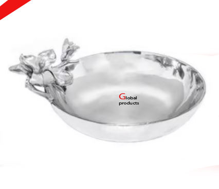 ชามสแตนเลสทรงกลมทำจากโลหะสีเงินพร้อมดีไซน์ดอกไม้สำหรับร้านอาหารและบาร์ในโรงแรม