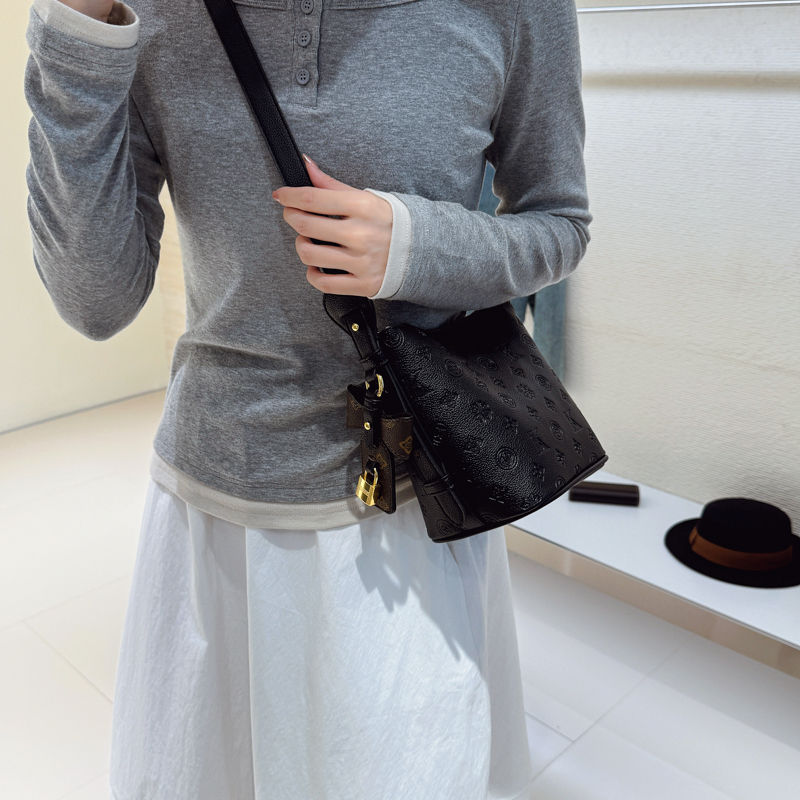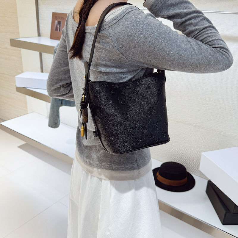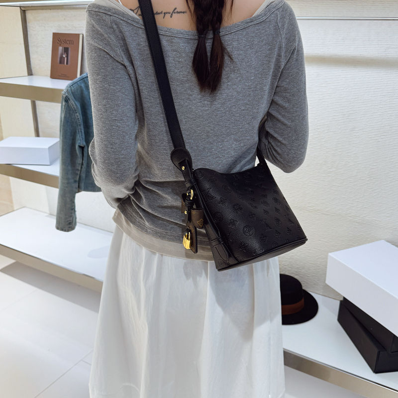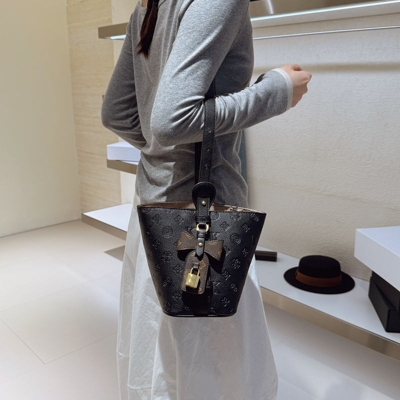 กระเป๋าถือผู้หญิงรุ่นใหม่ล่าสุด คุณภาพสูง แฟชั่นสไตล์เรโทร กระเป๋าทรงถัง ตัวล็อคแม่เหล็ก พิมพ์ลาย สะพายไหล่เดียวหรือสะพายข้างได้