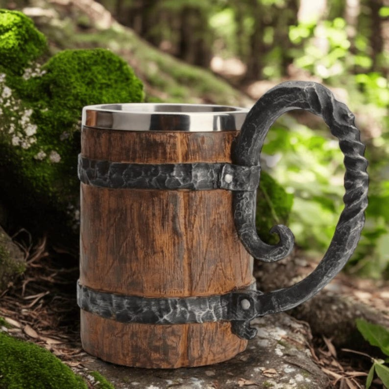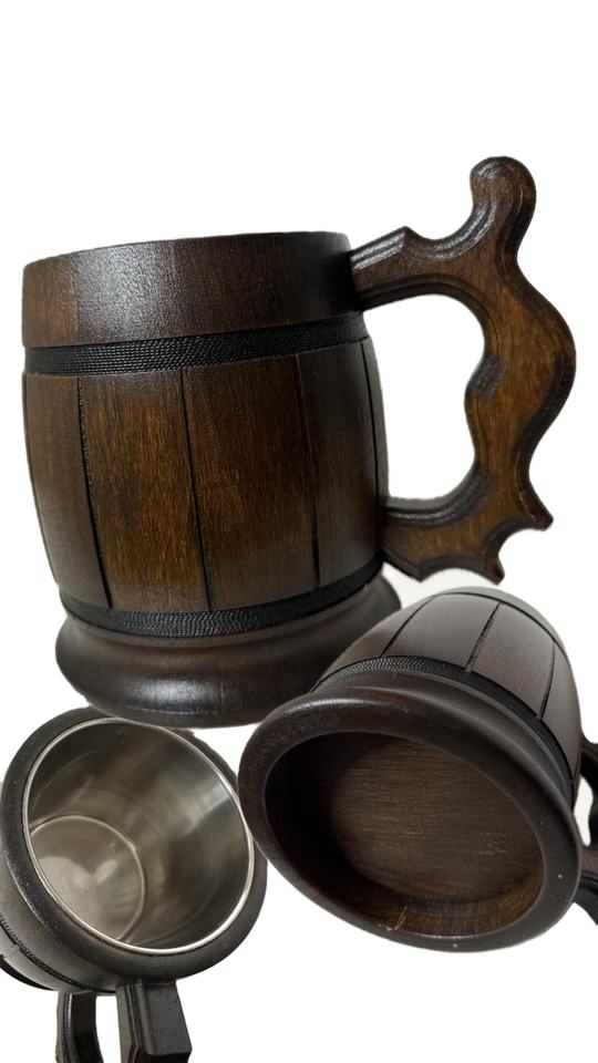 Handmade Wood cup Mug drinking with Polished Stainless Steel Glass Insert 250ml to 600ml