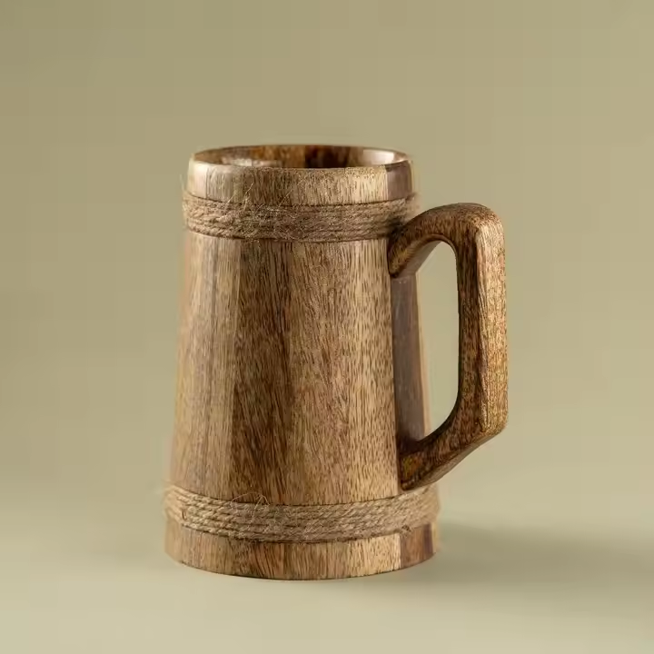 แก้วกาแฟฉนวนสุญญากาศกันการรั่วซึมแก้วมักไม้คุณภาพระดับพรีเมียมสำหรับชากาแฟและเบียร์ทำด้วยมือจากงานฝีมือรูปพระจันทร์เสี้ยว